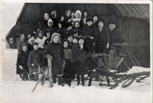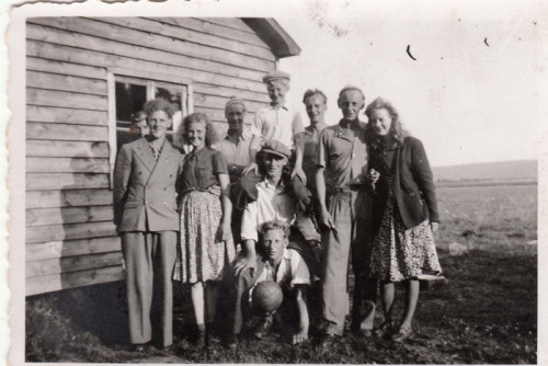 Samling vid nya klubbstugan på 1940-talet Skogens IF
